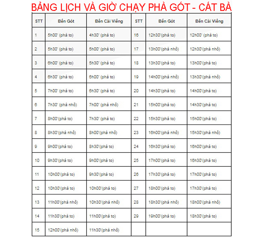 – Lịch chạy, giờ phà tại bến phà Gót – Cái Viềng: